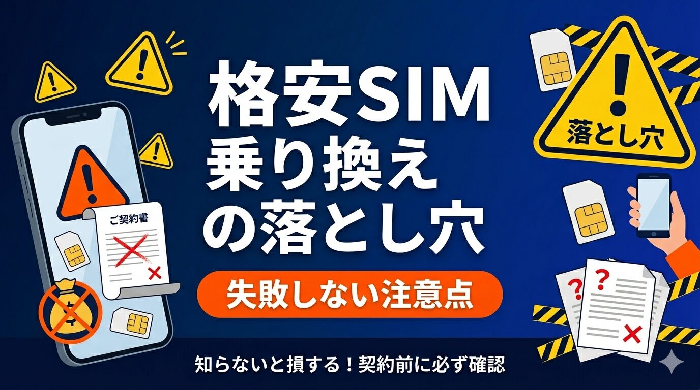 このセクションのポイント:格安SIMへの乗り換えは月額料金が大幅に下がる一方、事前に把握していないと痛い目を見る落とし穴が複数存在します。